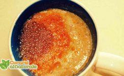 Aggiungi tutti gli ingredienti nella centrifuga e non spegnere il dispositivo fino a quando il composto non è ben combinato, in genere basta circa un solo minuto. Scalda la miscela liquida a fuoco medio-basso, facendo attenzione che non bolla per mantenere intatte le sostanze nutrienti, fino a quando non si raggiunge la temperatura desiderata. Servire immediatamente.